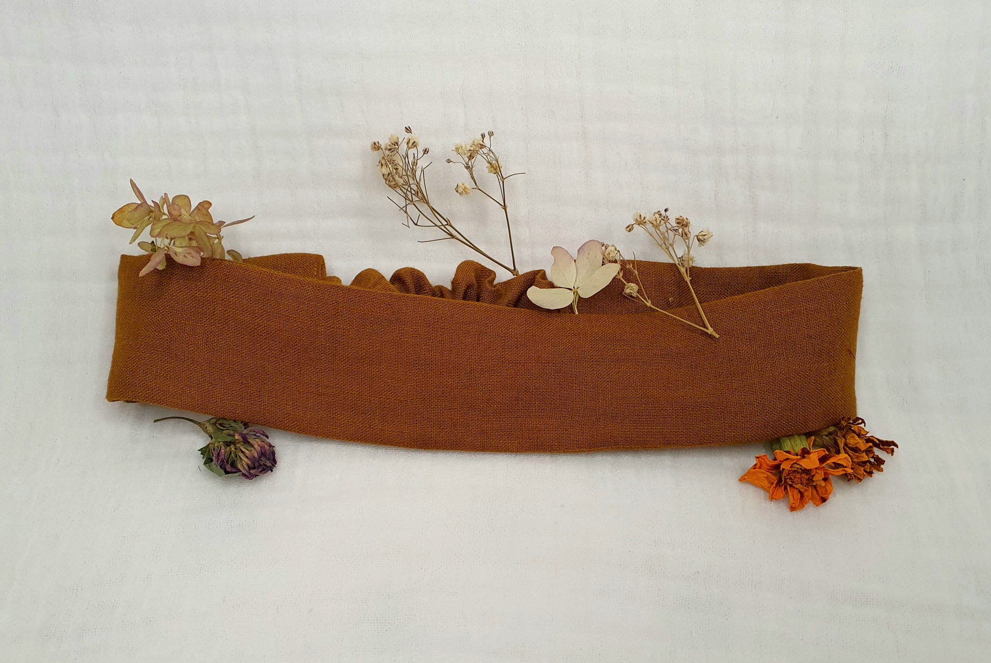 Ręcznie szyta z naturalnego lnu, ta opaska to połączenie natury i subtelnego stylu. Dzięki elastycznej gumce dopasowuje się do każdej głowy, nie uciska i pozostaje na miejscu przez cały dzień.