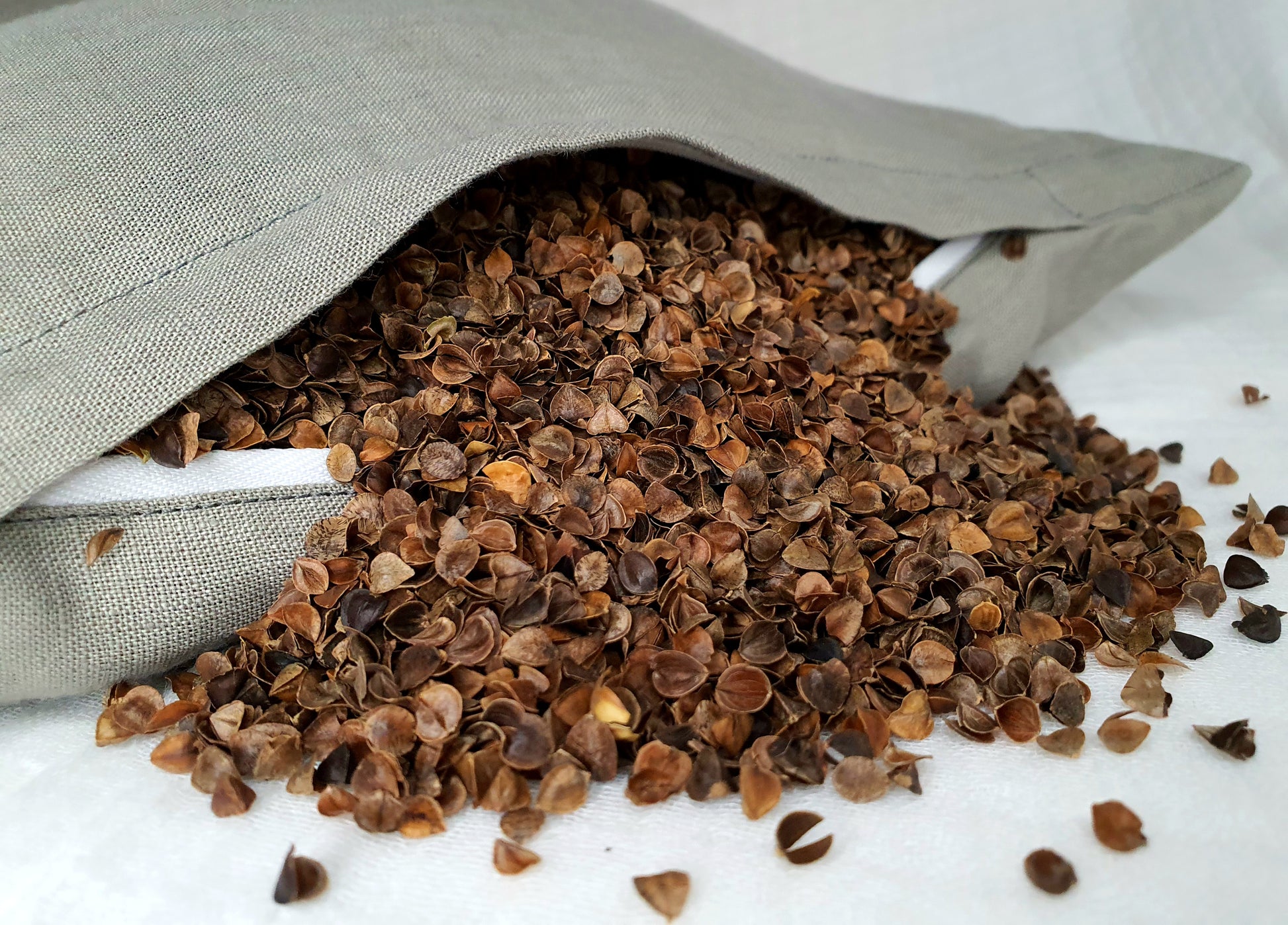 Łuska gryki- Wykazuje działanie antyalergiczne, pomaga w schorzeniach górnych dróg oddechowych. Znajduje się w niej tanina i rutyna, która w dużym stopniu hamuje rozwój roztoczy. Neutralizuje szkodliwe promieniowania elektromagnetyczne z urządzeń domowych. Poduszka do spania z łuską gryki korzystnie wpływa na jakość snu poprzez odpowiednie ułożenie głowy i szyi. Ilość wkładu należy dostosować do siebie.
